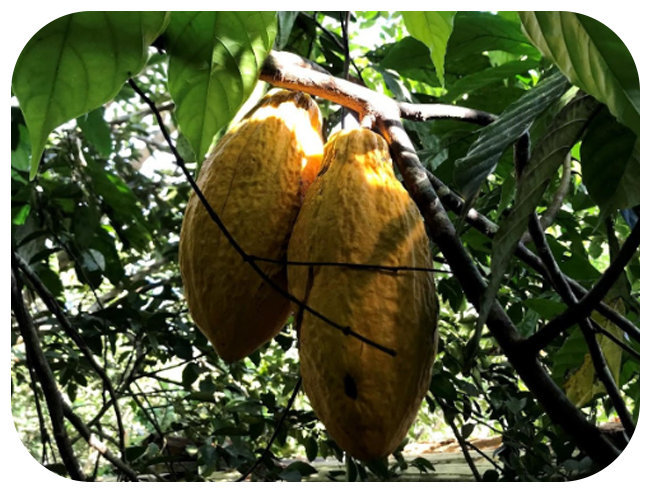 - Nas agroflorestas, o cacau cresce sob a proteção das árvores.